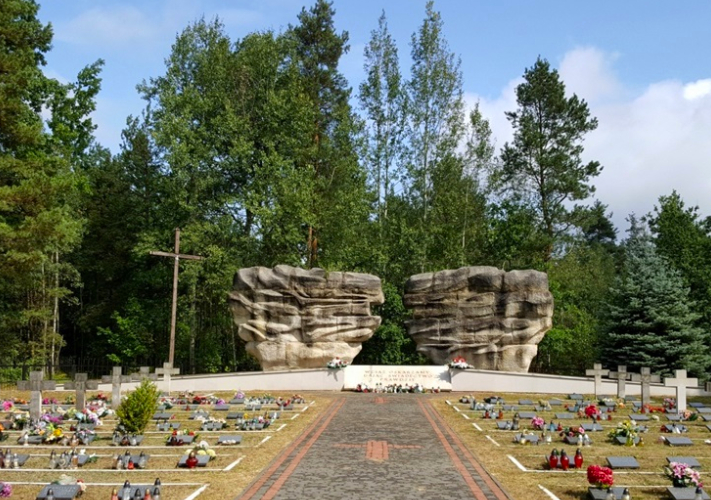 Cmentarz z monumentami, które upamiętniają Pacyfikacje wsi Skłoby.